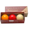 - Contiene 3 bolas lisas de igual tamaño (61,5mm), una blanca, una amarilla y una roja.